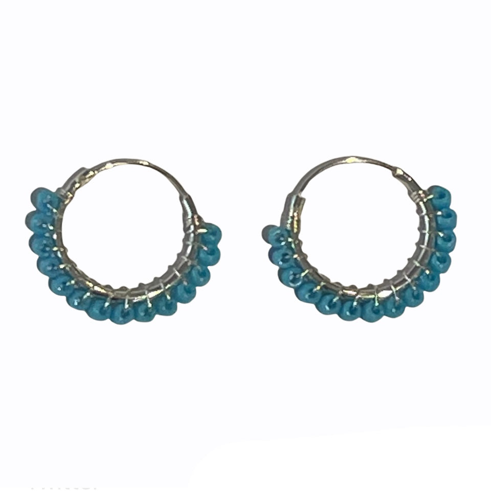 A 14mm sterling silver sleeper decorated with tiny glass beads.